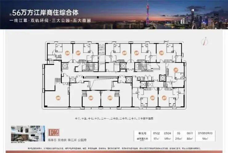 【E2#大城终章 压轴上新】规划户数:高厅大平层全盘仅80席!梯户比:专梯入户楼层数:31层收楼时间:2024年12月建筑层高:厅约4.5米,房约3米物业公司:越秀服务(国家一级资质)物业管理费:4.98元/㎡户型产品:建面约160-220㎡四至五房