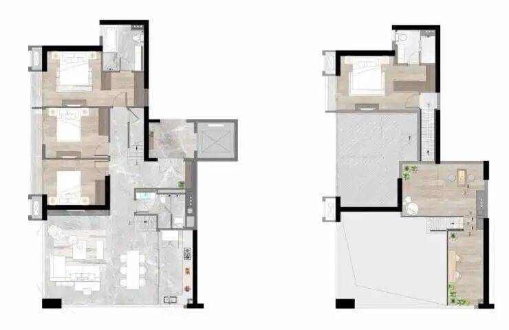 【E2#江幕·A户型】建面约223㎡五房两厅三卫私享独立电梯厅,奢享私密入户体验全空间景观面,约25米一线江景延展双主卧套房设计,上下双主卧套房设计夹层多功能活动空间,延伸更多可能