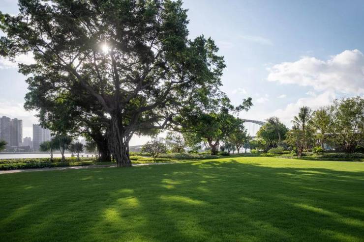 展示区保留了五颗古榕树,在老广的情怀里,古榕树意味着繁华昌盛、镇宅安宁,这五颗榕树未来交付也并入园林