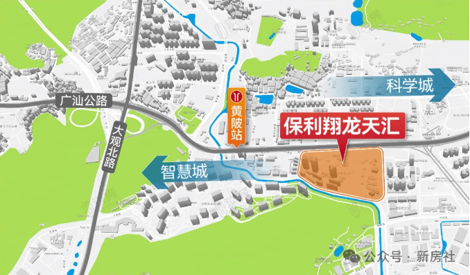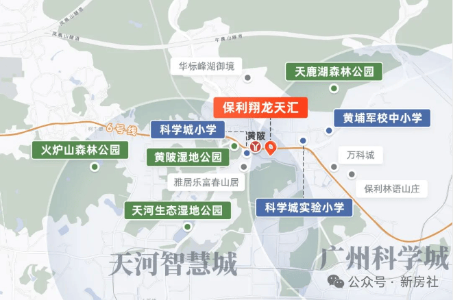 保利翔龙天作为科学城和智慧城交汇处,与天河一路之隔,优越的区位选址,让项目可同享天河智慧城与科学城双城的发展利好。是“天河东门户”,左右逢源:左手,是科创前沿阵地天河智慧城,网易、小鹏都在这里;右手,则是广州科技城的祖师爷科学城,已进入收获期。