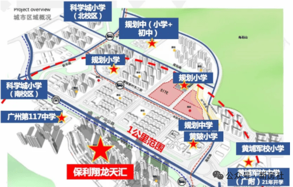 项目约1公里,可步行的范围内,小学有5所(含已规划的一所),包括科学城小学、黄陂小学、黄埔军校小学、联和小学;中学2所,为117中学和黄埔军校中学。(注:学校地段划分以当年教育局公布信息为准)