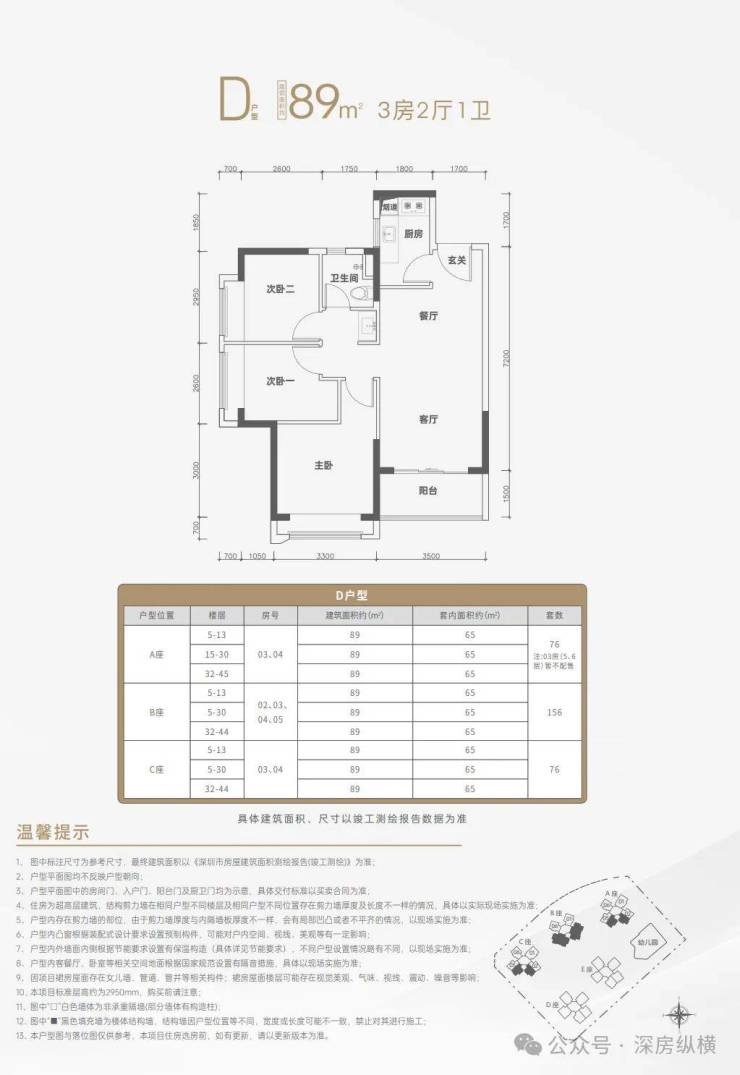 项目建设用地面积约18902.63㎡,规定容积率为6.55。总建筑面积约176606.55㎡,其中住宅建筑面积约102961.73㎡,商业建筑面积约10446.46㎡,公共配套设施建筑面积约10422.67㎡(包括幼儿园约2972.67㎡,社区级公共配套用房约2226.7㎡、社区健康服务中心约1400.7㎡、文化活动室约1503.77㎡、社区老年人日间照料中心约750.44㎡、社区管理用房约312.77㎡、便民服务站约400.1㎡、母婴室约6.8㎡、环卫工人作息房约20.63㎡、微型消防站约120.5㎡、邮政所约125.1㎡、社区警务室约100.54㎡、小型垃圾转运站地上、地下面积合计约481.95㎡),最终面积以《深圳市房屋建筑面积测绘报告(竣工测绘)》为准。