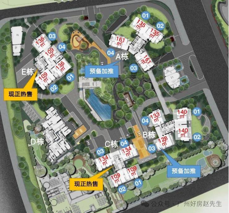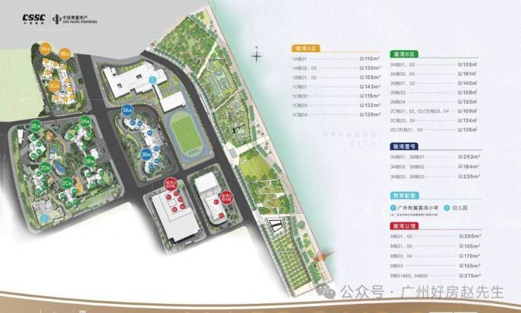 璇湾B区共规划A、B、C、D、E共5栋,在售C、E栋109136㎡三四房改善产品本次将加推A、B栋约128-135-161㎡全新江景产品