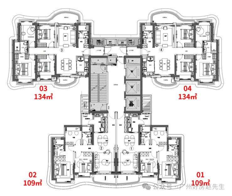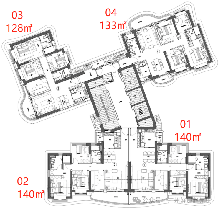 全部为3T4户的低密产品,此面积段市区无此低密度