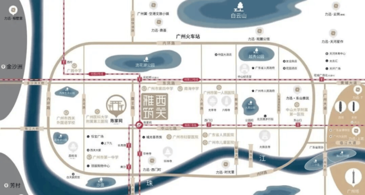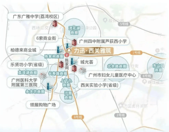 广州力迅西关雅筑位于荔湾区中山七路与康王北路交汇处,紧邻地铁1号线与8号线交汇的陈家祠站