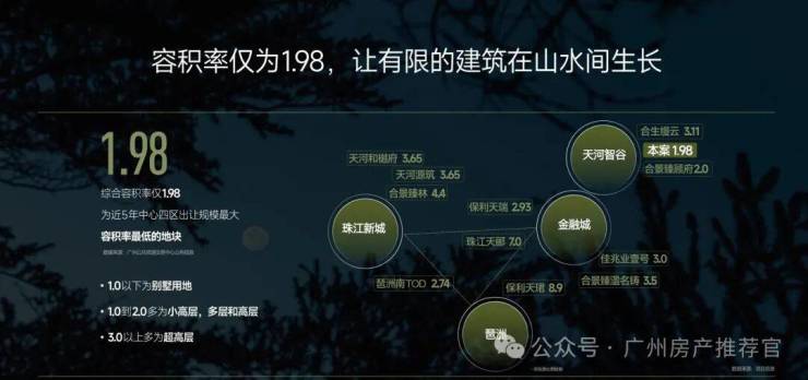 项目容积率仅1.98,是近5年中心四区出让规模最大,容积率最低的地块,宛如在森林里种房子