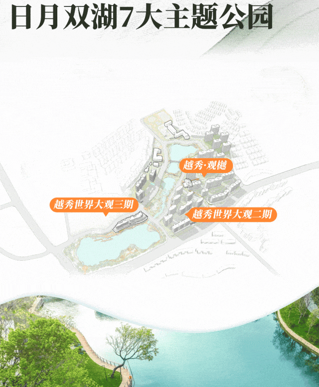 这恰恰也是,越秀·观樾的真正美妙之处——与月亮湖、太阳湖、中心湖紧紧相拥。