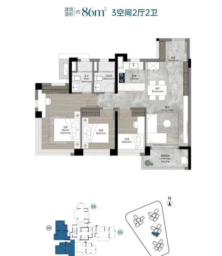 2、户型实用,新规户型使用率高达120%,阳台占比达套内面积20%,88㎡三房能做到四开间朝南,空间利用率高,居住舒适度提升。