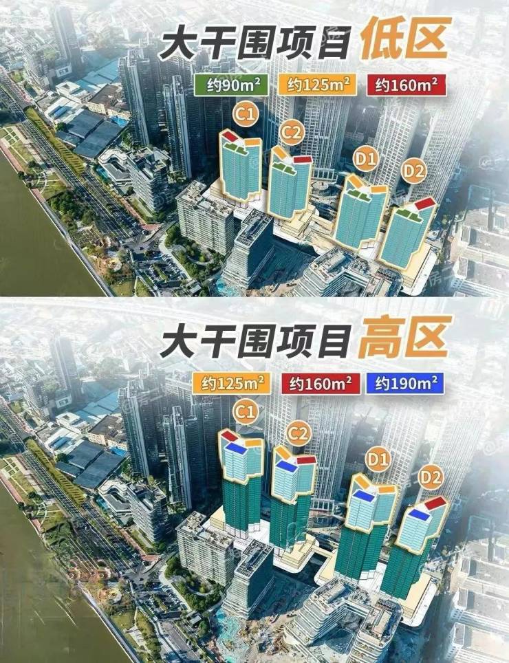 25-37层为高区,2T3,包括120-160-190㎡户型。