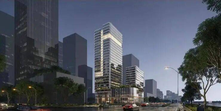 外立面采用木色陶板与全景玻璃幕墙,以“曲水流觞”的涟漪造型呼应珠江文脉,同时融入垂直生态理念,打造空中绿岛与可呼吸的建筑肌理。