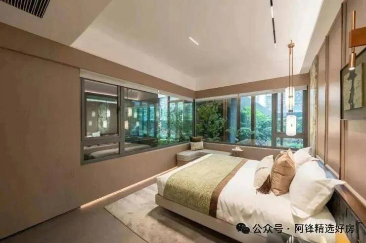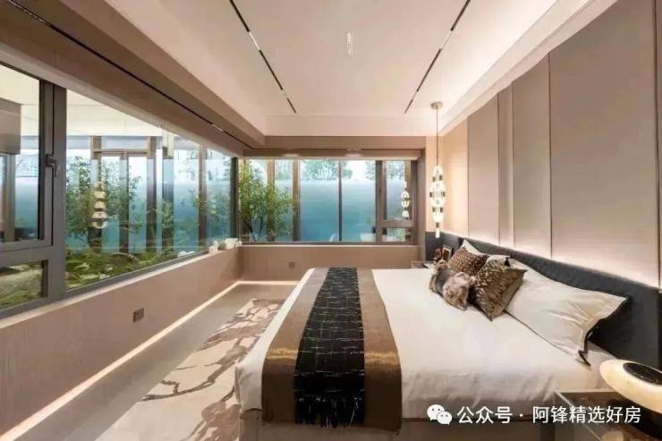 南北通透,三面采光,超长的270°无边际飘窗,还有一个独立衣帽间,相当于市面上140平户型的享受。