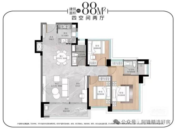 建面约88平四空间,实际体验感相当于市面上110平以上的大户型。