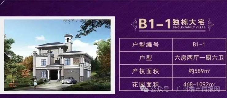独栋别墅:建筑面积425-589㎡(赠送)花园面积 500-1200㎡