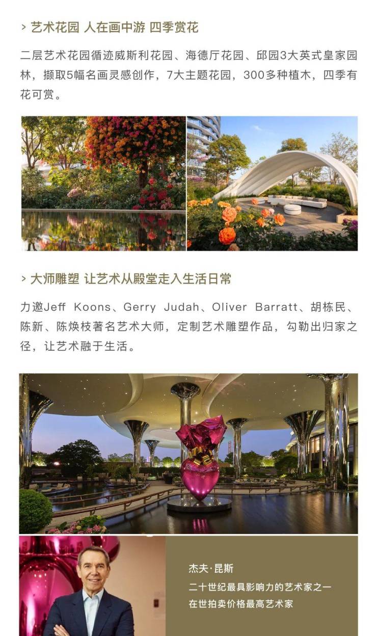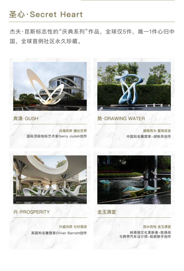 艺术地标:湾颂・艺术中心可举办顶级演出、展览及专业赛事,曾展陈价值 5.129 亿元的吴彬《十面灵璧图》,永久收藏杰夫・昆斯《圣心》雕塑。
