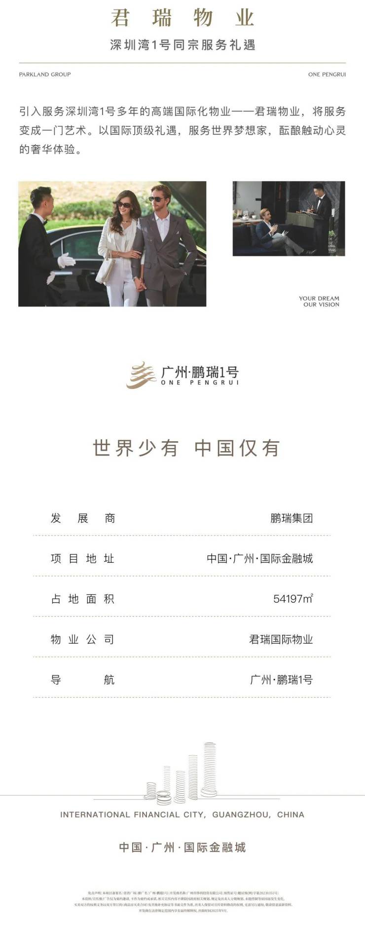 广州鹏瑞 1 号是鹏瑞集团继深圳湾 1 号后,以 “全面超越自我” 理念打造的 “中国仅有、世界少有” 全球影响力地标综合体。作为创始人徐航先生献给故乡广州的百年建筑作品,其定位 “服务全球企业的广州会客厅”,对标纽约 220 Central Park South、东京 Aman Residences 等国际顶豪,重新定义粤港澳大湾区顶奢生活标准。2023 年,项目斩获世界高层建筑与都市人居学会 CTBUH 全球未来奖,印证其建筑领域的国际认可度。
