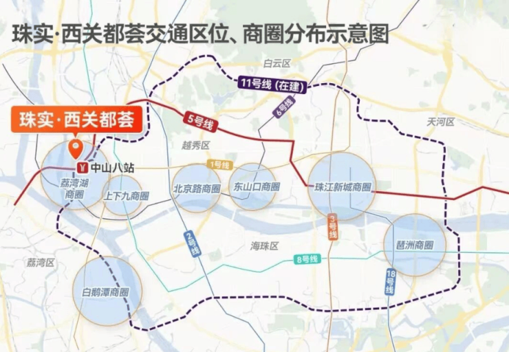 在周边配套方面,珠实西关都荟可谓 “立于广州传统生活与人文资源之巅” 。交通方面,地铁1号线、6号线、8号线等多线路环绕,路网密集,出行极其高效。商业与人文方面,步行可达上下九步行街、永庆坊、荔枝湾等著名商圈与文化景区,尽享广府魅力。教育资源则坐享荔湾区积淀深厚的省市级名校体系。