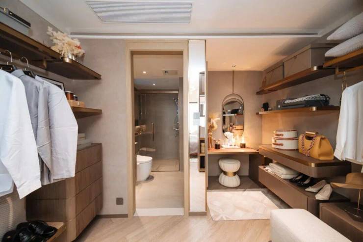 上下两层分层而居,为生活的每一寸空间注入灵感,奢阔主卧配置步入式衣帽间、干湿分离独立卫浴,通过隐藏在产品里的百余项细节,塑造尊府系产品的奢华尊贵。