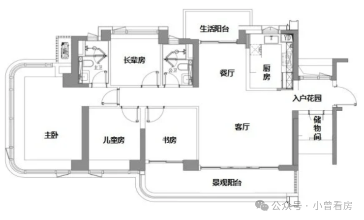 128㎡四房两卫:宽幕观景大宅,户型方正,布局合理。客厅连接景观阳台,采光通风良好,可享受宽幅视野。卧室设计舒适,长辈房、儿童房、书房一应俱全,满足家庭多样化需求。