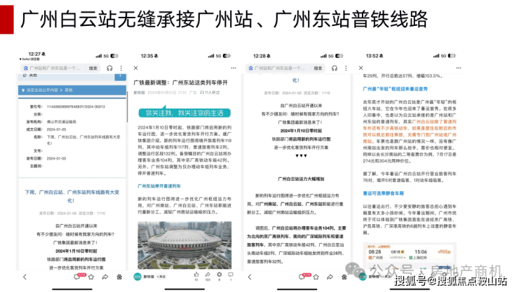 传统高铁商铺,一铺难求,站内国企独营,商铺租金3000元/㎡·月起,进驻门槛高;广州站、广州东站以及南站附近商铺租金最低500元/㎡·月起;广州白云站大湾区唯一可售高铁上盖商铺,坐享广州白云站千万的商旅客流,唯一无需招标、最低门槛可进驻的高铁商铺,做全国首批高铁商铺业主。