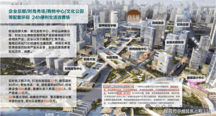 广州白云站作为粤港澳大湾区的地标建筑,亚洲超大型综合交通枢纽之一,亚洲最大综合交通枢纽之一,全国TOD5.0高铁站范本,政府投资超440亿,站场规模约45.3万平方米,约广州南站4倍投资。“站、产、城”同步一体化开发运营,为城市中芯再造核芯吸附力,形成人流与经济价值的多重虹吸与辐射能量。