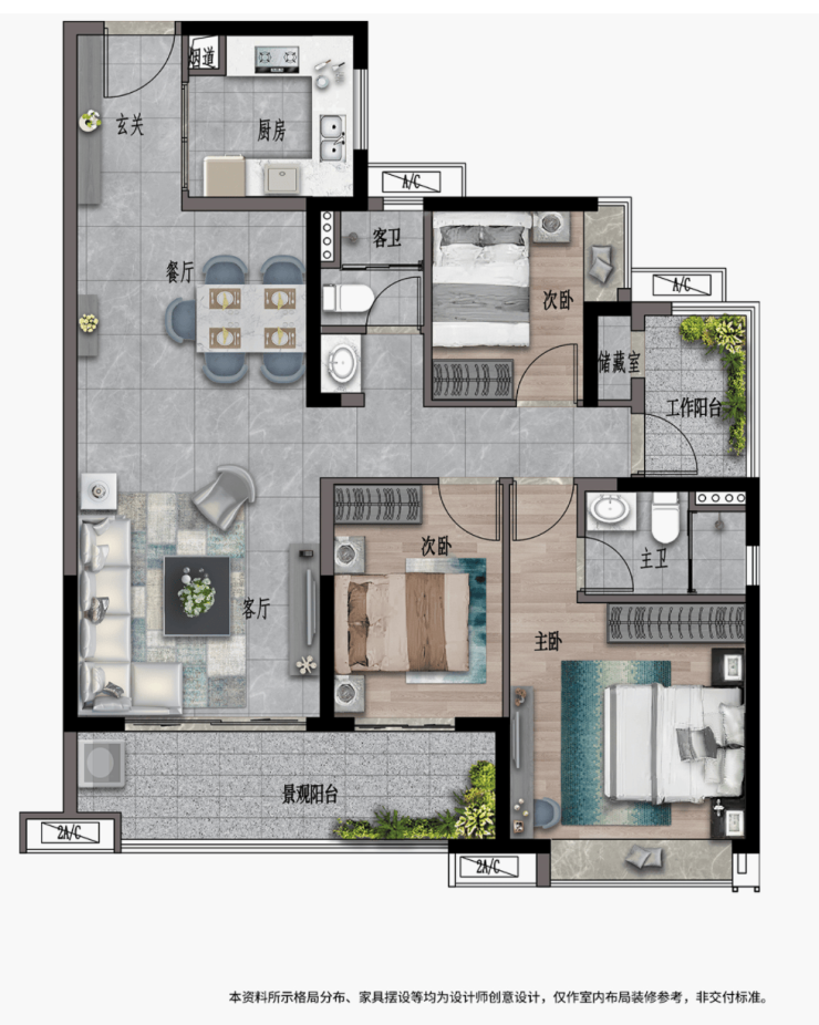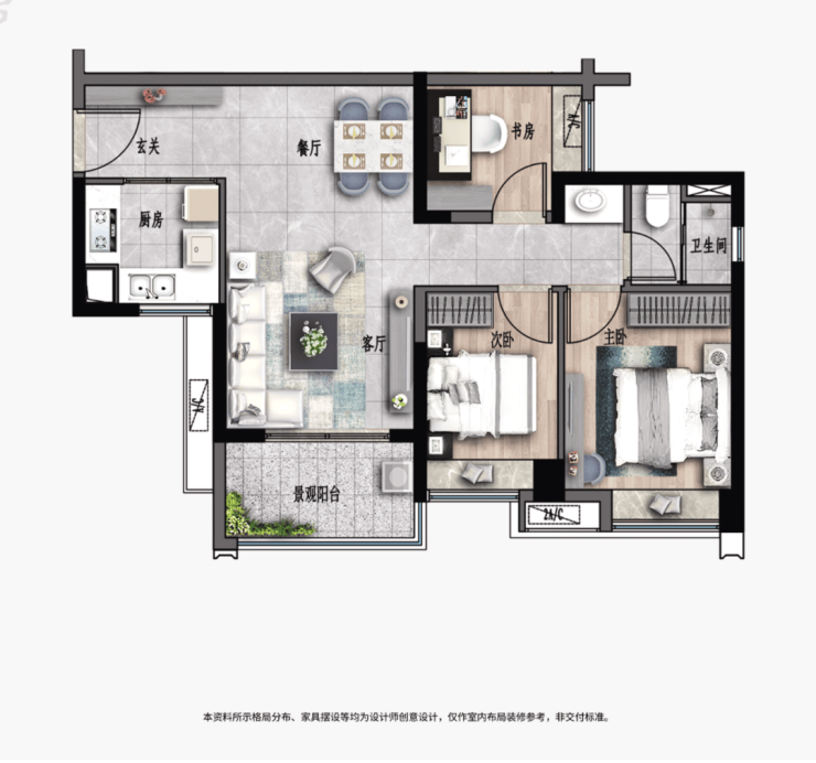 约三房带主套+望江/望园林+约3.3m开间阔厅