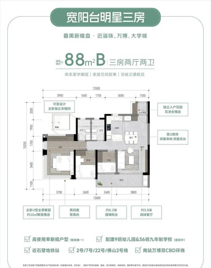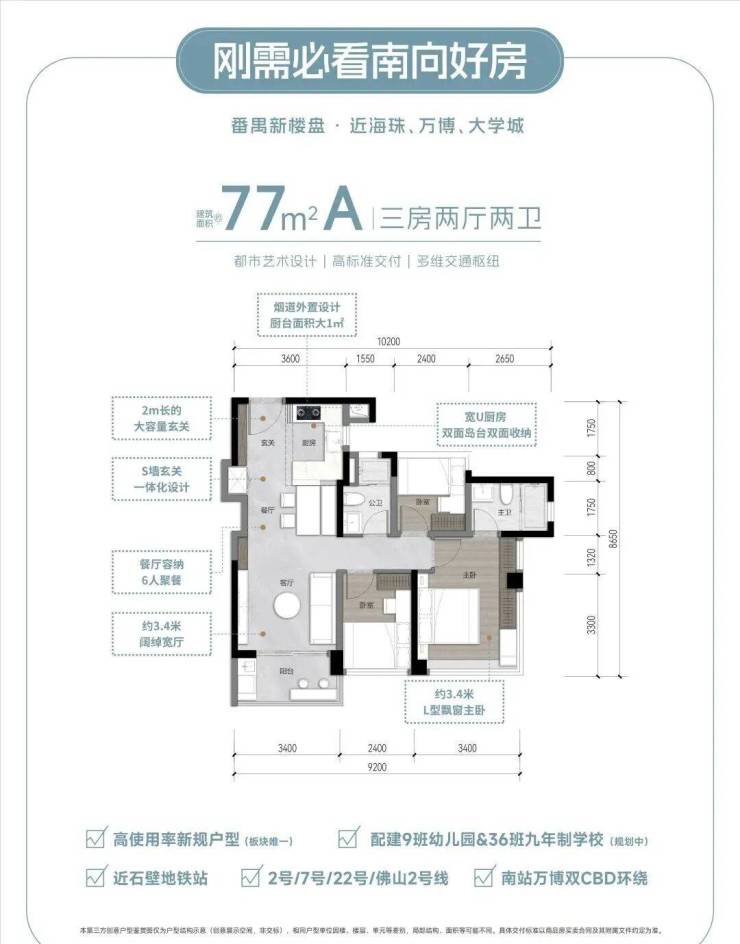 项目距离地铁2号线、7号线、佛山地铁2号线、22号线,四线交汇的广州南站超级枢纽约1.7公里,6站到珠江新城,4站到海珠,4站到万博。