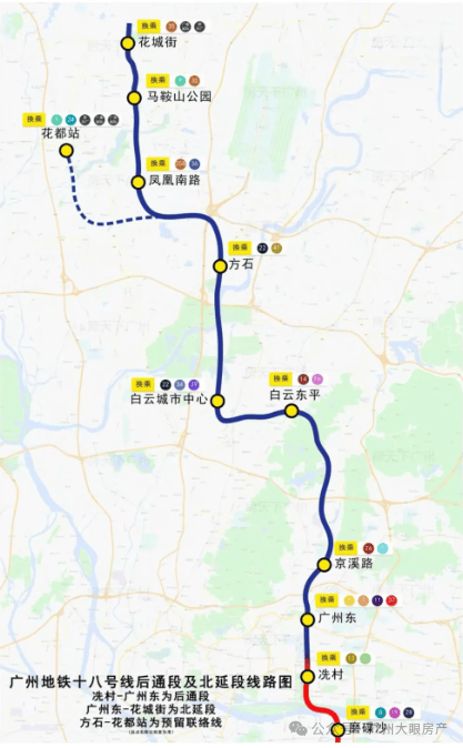 新白广城轨(在建中)1站白云机场,南向通达东莞和深圳。