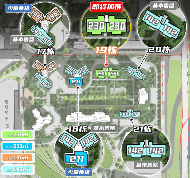 产品上,还在一期的基础上进行升级了,整体以13-24层的小高层为主,使用率100%-110%。