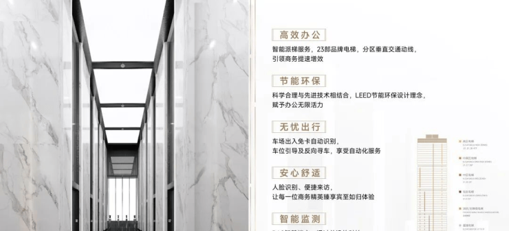 小区配套:打造集总部办公、国际物流、商务会议、高端餐饮等众多复合功能于一体的垂直都会,全市罕有云端露台,极致中空空间,具备打造天际会所条件,成就让世界瞩目的塔尖商务巨擎。