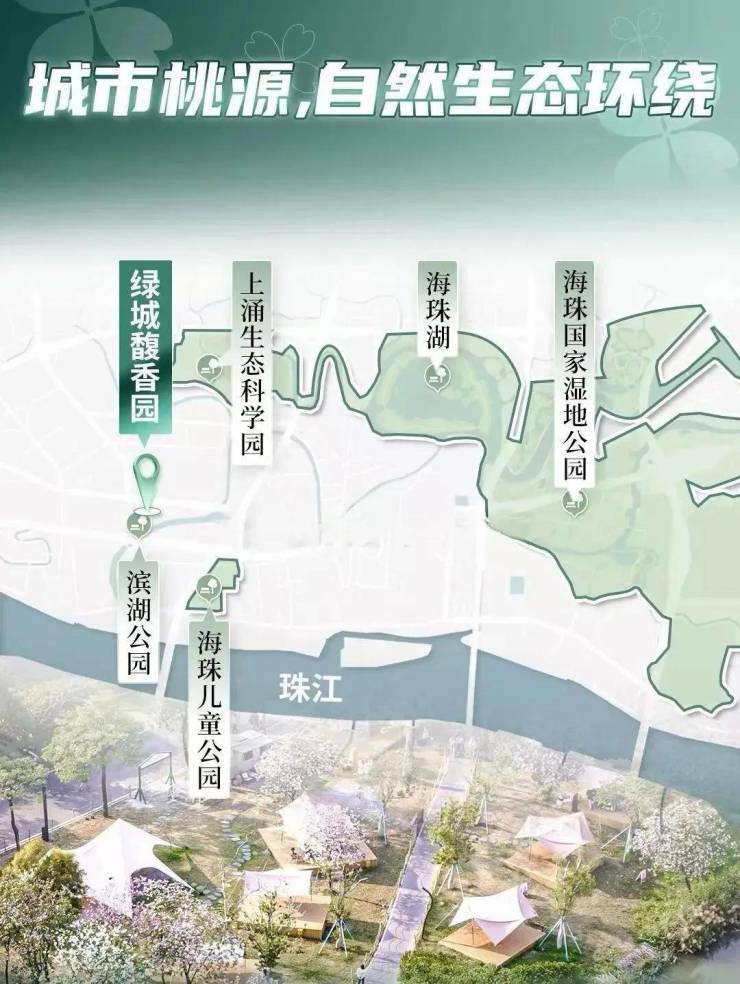 从外部来看,项目背靠河涌,打造了一个滨河公园,与周边的海珠儿童公园、海珠湖、海珠国家湿地等,形成了巨大的天然的生态背景板。