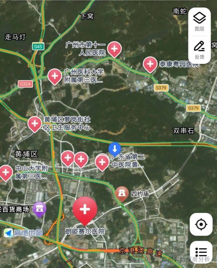 目前周边有广东省第二中医院黄埔医院、广医妇女儿童医院、中山大学附属第三医院岭南医院,还有规划的省人民医院。