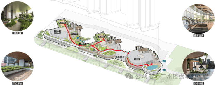 步行即达舌尖广州线、商圈打卡线、出圈人文线、健康保卫线内的多样配套