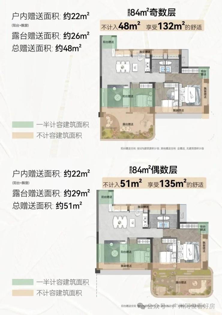 奇数层:超大露台联通客厅与次卧(如155㎡露台52㎡),适合家庭共享;