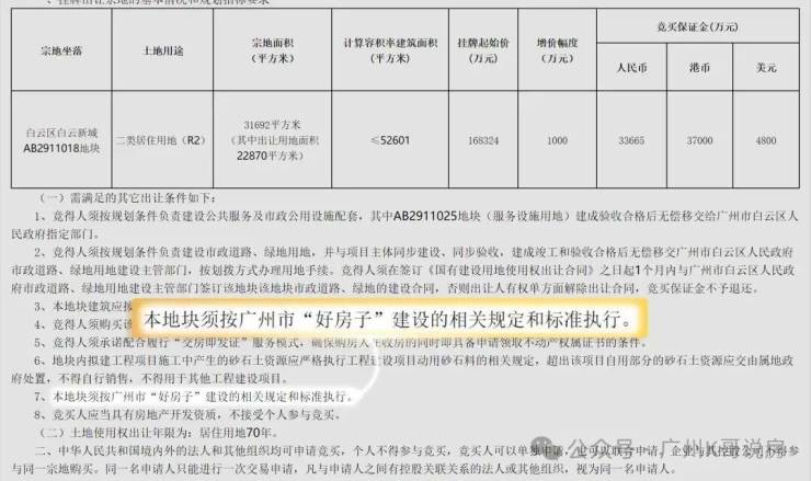 保利白云新城项目,恰恰是广州第一宗在土地出让公告中,就明确写入“好房子”建设标准的地块。