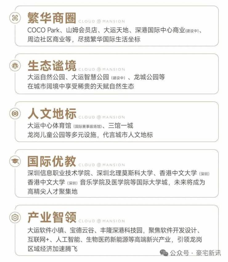 大运新城-深圳东部唯一“城市会客厅”,与前海中心、深圳湾超总、香蜜湖金融街等区域并列深圳六大城市会客厅,汇聚东部大型综合交通枢纽,标杆性文化体育场馆、产业精英商务群、国际大学城等优势,大运新城将成为深圳东部重要发展极点,推动深圳东部增长。