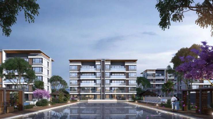 项目门口800米处国际配套(五馆一中心效果图)占地10万平方米,地上建筑组成如下:
