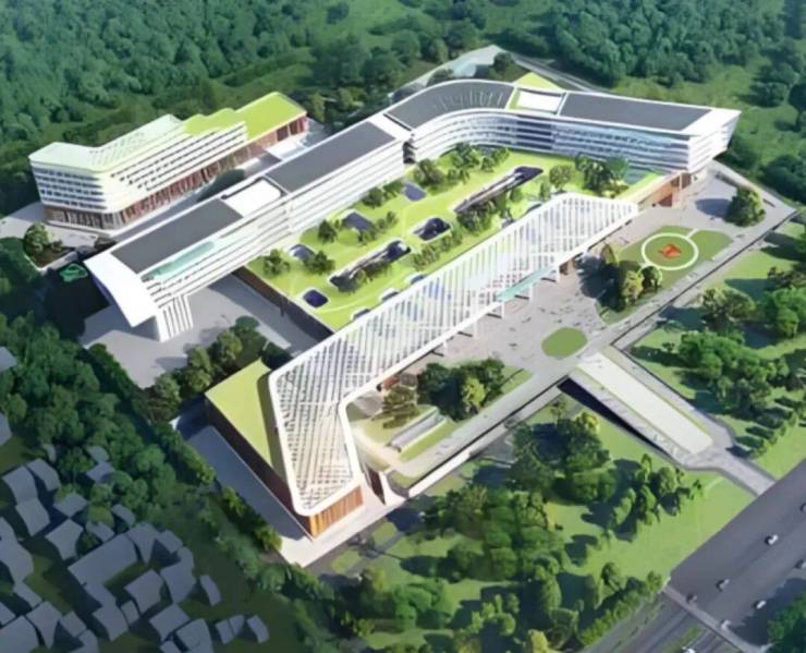 总占地85222方、总建面204000方、地面八层,地下两层、总投资19亿元、一期128亩、设置1000张床位,二期占地70亩,设施先进🚁直升机的停机坪。