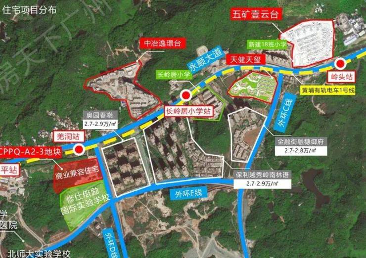 此外,靠近有轨1号线羌洞站西南侧将规划 黄埔第三个万达广场, 建筑面积将达8万多方,定位是解决长岭居板块无大型商业配套等困境,位置在小区西南边不远处。