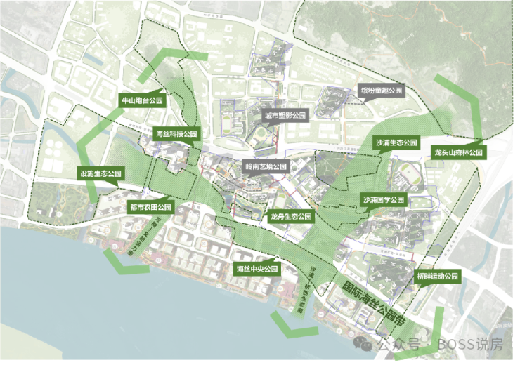 结合本土文化内涵塑造9个特色主题公园:海丝科技公园、都市农田公园、岭南艺境公园、沙浦国学公园、城市塑影公园、缤纷童趣公园、龙舟生态公园、远洋文化公园、桥畔运动公园。