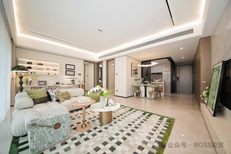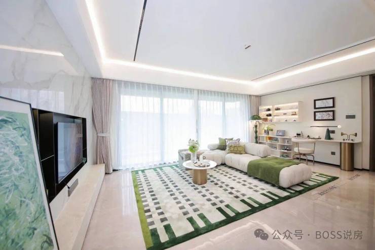南向采光面超过16m,32㎡无界方厅,L型大阳台设计,270°环幕视野。
