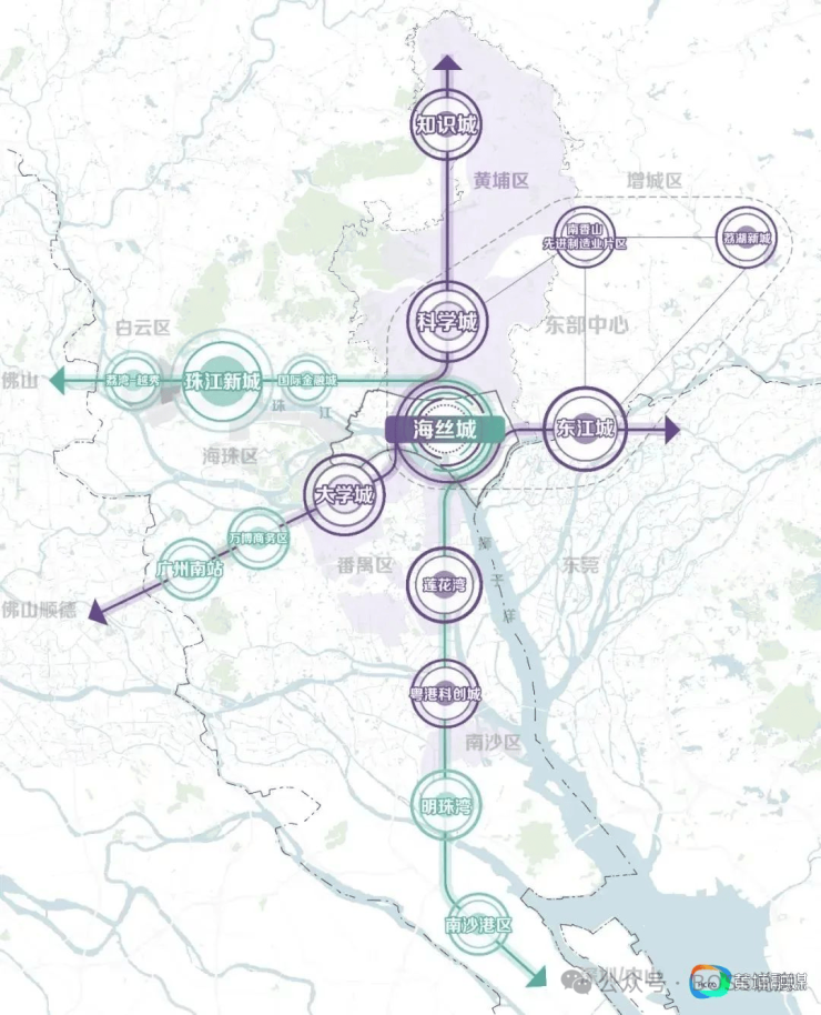 广州海丝城:是由全国工程勘察设计大师、中规院原院长李晓江团队规划设计。整个区域总面积84.51平方公里,相当于 14 个珠江新城的大小。倚山望江,拥有得天独厚的地理区位、人文历史资源。