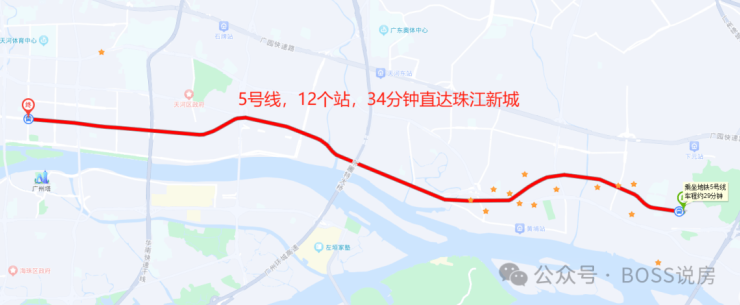 而5号线双沙站距首开的6号地块仅约50米,导航34分钟直达珠江新城;