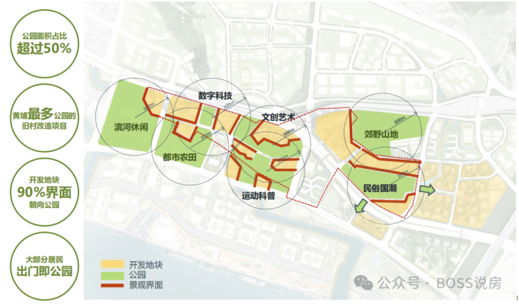 所开发地块约90%界面朝向公园,打造 300 米见绿,500 米见园;