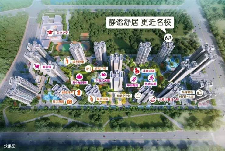 配备约1000m²下沉式泳池 、约2000m²运动天地 、约900m²儿童乐园、环形有氧跑道、约2300㎡商业街、8大主题泛会所等片区难得高配,让不同年龄段家庭成员享受舒适居住体验。