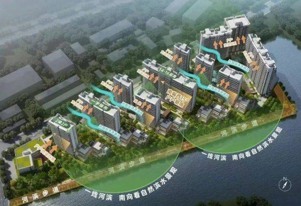 该项目建设于海珠琶洲CBD板块,西侧紧邻广州海珠湿地公园,南侧靠近石榴岗河,地理位置得天独厚。周边环境优美,空气清新,是城市中难得的静谧之地。小区设计注重居住体验,采用南低北高的布局方式,东侧的临河位置由于限高要求,做了5栋4层高的叠墅,西侧则是15-16层的小高层设计,确保每户都能享受到充足的阳光与通风。