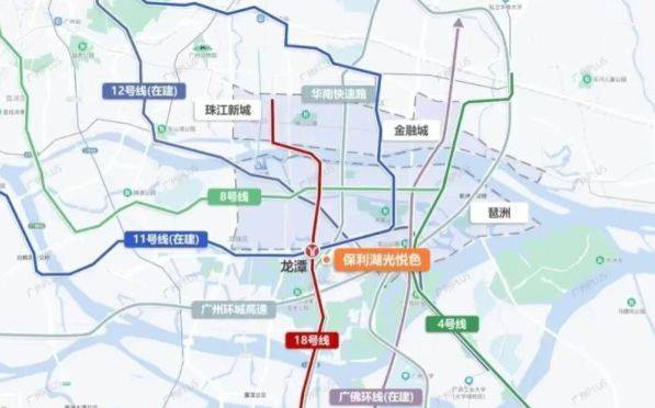 该项目距离地铁18号线和在建11号线交汇的龙潭站约600米,出行十分便捷。从龙潭站出发,可以快速到达珠江新城、琶洲金融城等核心区域。此外,自驾可通过新港路、新滘路、广州大道等主干道,迅速通勤至各大商业区和生活圈。