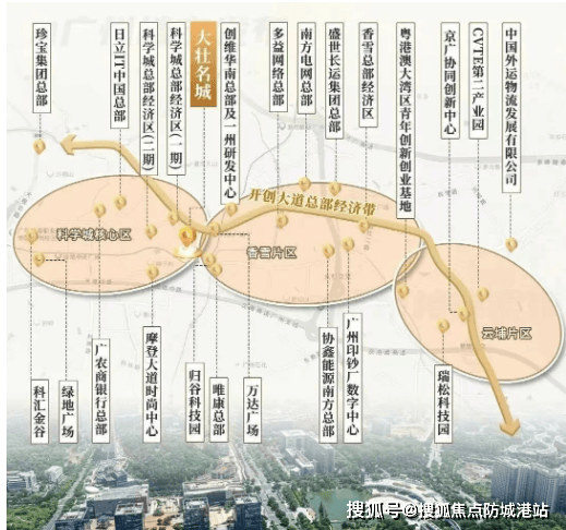 大壮名城·名门坐落于黄埔区府板块核心——科学城政务、商贸、产业与教育四大中心交汇处,堪称整个科学城的“C位”。这里聚集了南方电网总部、广州农商行总部、视源电子、金发科技等80%以上的黄埔上市公司与60%以上的高新技术企业,常住人口十年增长98%,2023年科学城更在全国科技城百强榜中高居第二,仅次于上海张江。