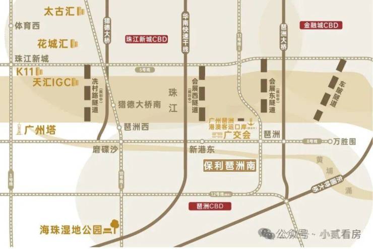 项目距离广州地铁8号线和11号线的琶洲站仅900米,步行即可到达。