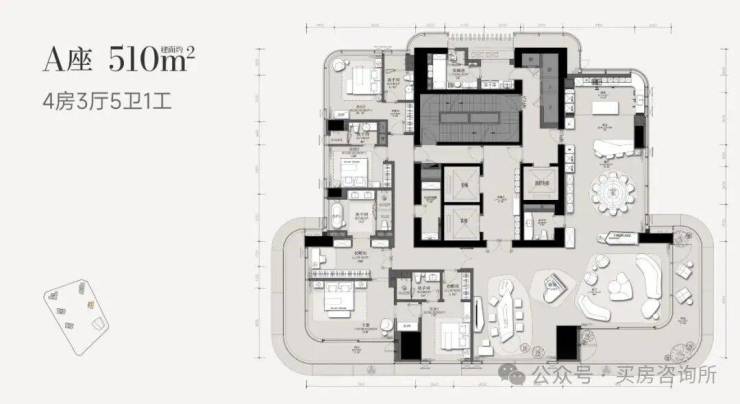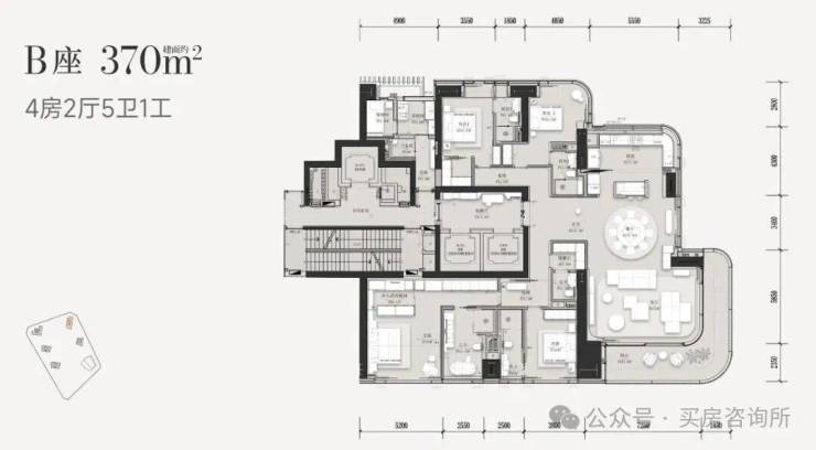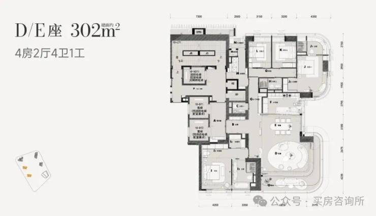 项目将会开放302㎡和370㎡两个户型,首推E栋的302㎡