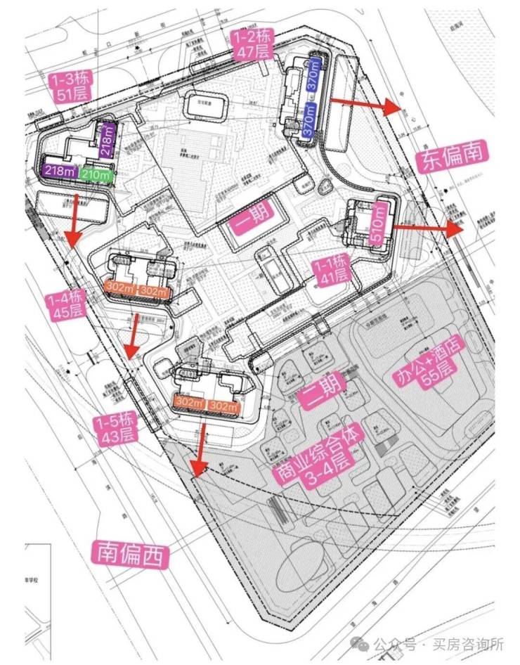 元湾府又名中信信悦湾即将推售的一期地块,将建5栋超40层的高层住宅,最高一栋为西北侧1栋C座,将达到51层的高度,预计有约400余套房源。
